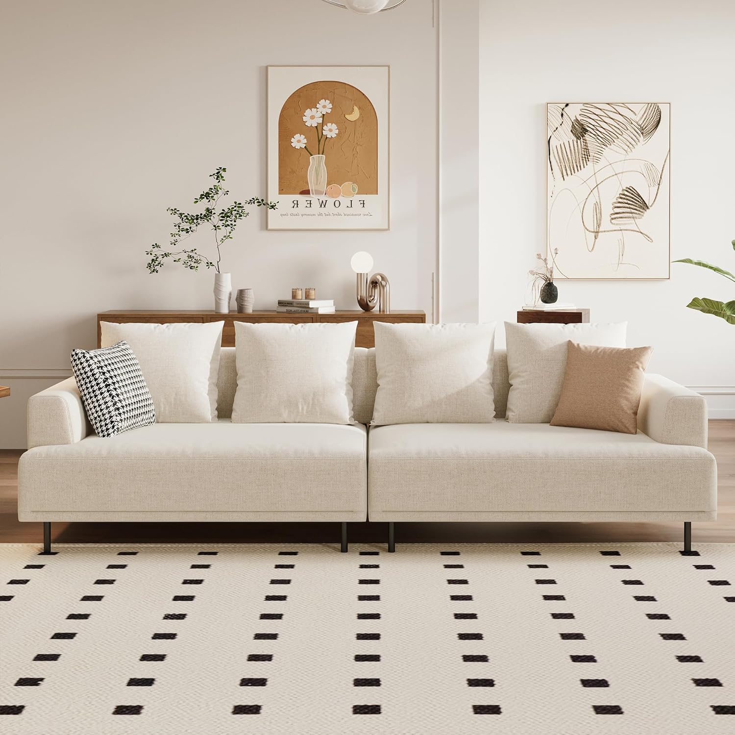 Modular Sectional Sofa for Living Room, 82.6" Wide Mid-Century Modern Fabric Couch with Cozy Seating, Suitable for Living Room, Bedroom & Daily Relaxation - Beige